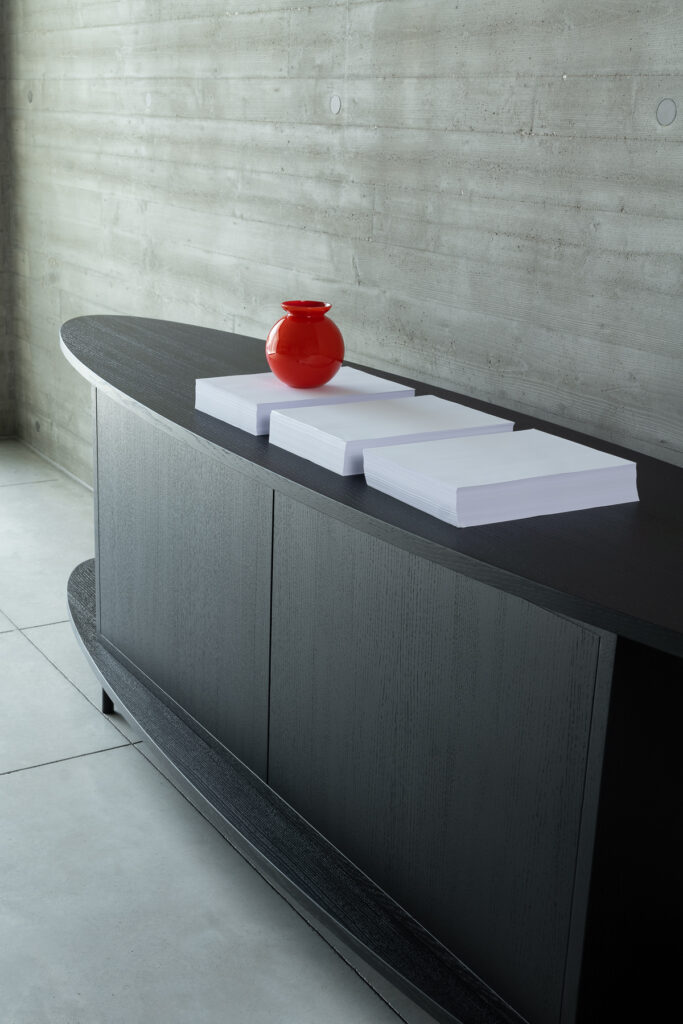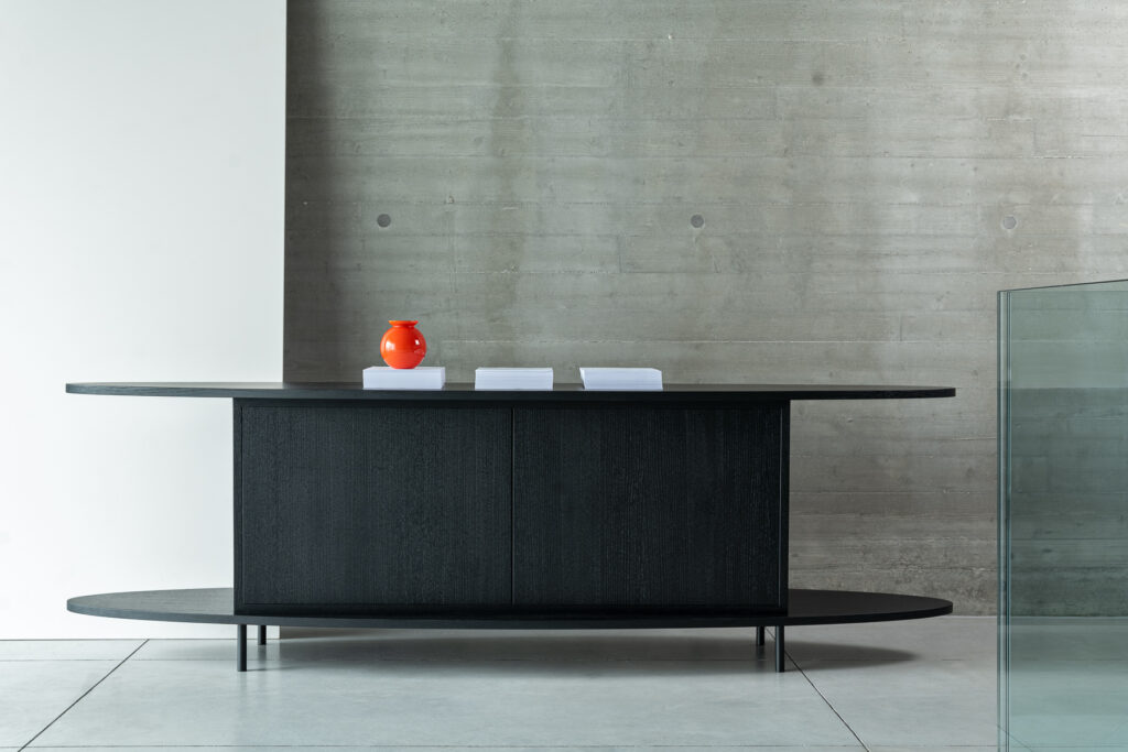 Cleofe è sistema a giorno, consolle e libreria. La struttura può essere in rovere nelle diverse colorazioni o in noce ossido; i piedini in metallo nero. Il segreto è nella sua struttura, forte, elementare, versatile. Cleofe è una madia che trova nuove declinazioni, nuove possibilità, secondo il contesto, il luogo, le esigenze. Reinterpretando ogni volta i propri elementi, in ragione di scopo e spazio, ma senza mai perdere unitarietà, coerenza, impeccabile effetto estetico.