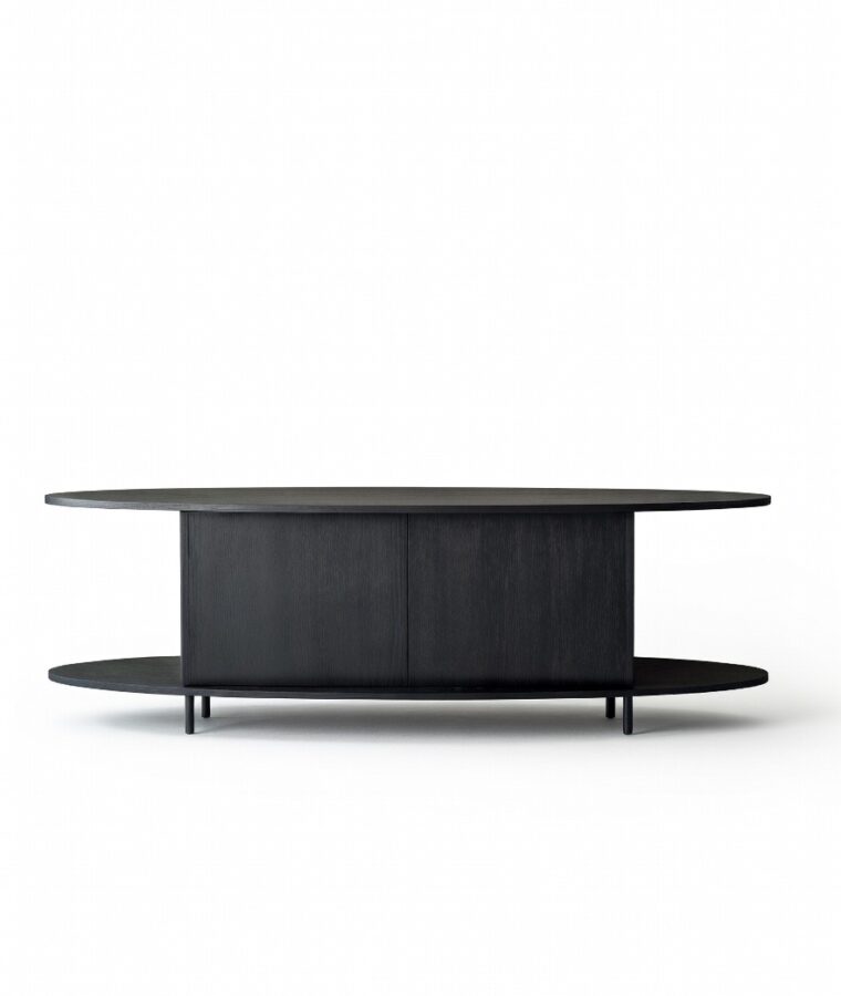 Cleofe es un aparador, una consola y una librería. Su estructura está disponible en roble en varios tonos o en nogal oxidado; sus patas son de metal negro. Su secreto reside en su diseño: robusto, sencillo y versátil. Cleofe es un aparador que se reinventa constantemente, ofreciendo nuevas posibilidades según el contexto, el espacio y las necesidades. En cada ocasión, sus elementos se reinterpretan según el uso y el espacio, sin perder jamás su unidad, su coherencia y su impecable estética.