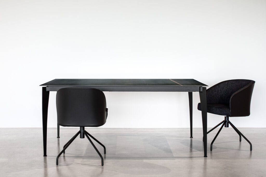Semplicità costruttiva ed essenza dei materiali danno vita al tavolo allungabile Mad. Ad interrompere il rigore della forma rettangolare la lieve raggiatura delle gambe che conferisce al tavolo armonia e compattezza di forma.