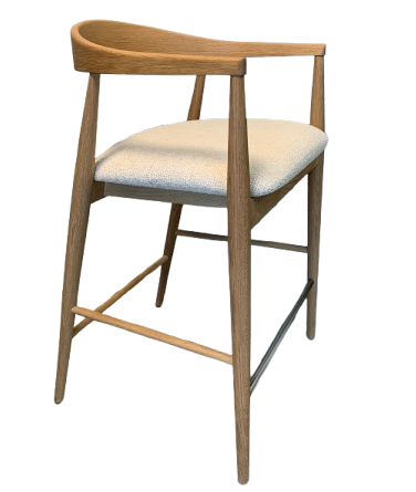 Uno sgabello dall’aspetto classico, con qualcosa in più merito della curvatura dello schienale . Disponibile in rovere in diverse finiture e seduta imbottita.
